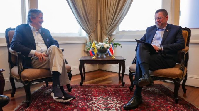 miércoles 1 de marzo de 2023. El presidente de Costa Rica, Rodrigo Chaves, y el de Ecuador, Guillermo Lasso, destacaron