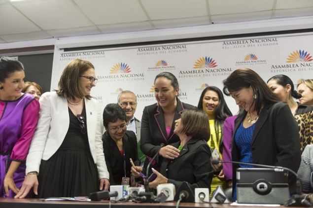 Gabriela Rivadeneira, presidenta de la Asamblea y Gina Godoy, titular del Grupo de Mujeres Parlamentarias de Parlaméricas, dieron la bienvenida a las legisladoras que llegaron de otros países.