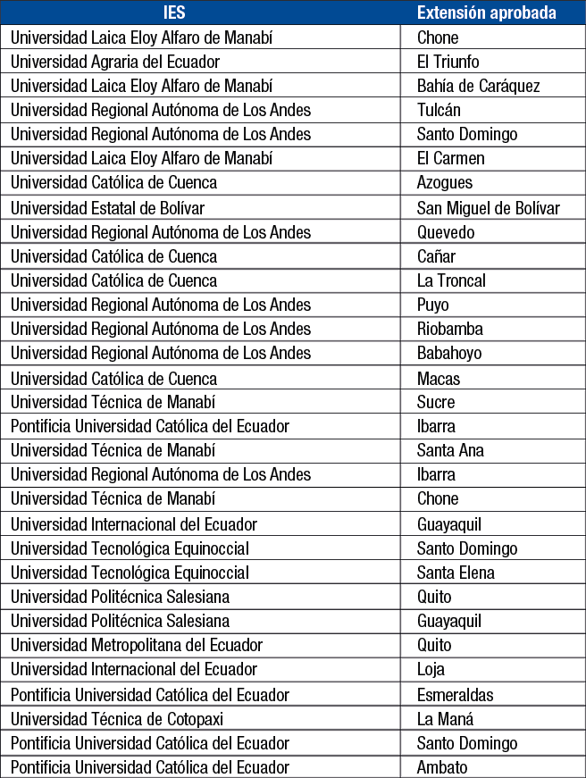 Según información del Ceaaces en las 31 extensiones aprobadas estudian alrededor de 47.904 alumnos, mientras que en las no aprobadas se forman académicamente 2.602 estudiantes.