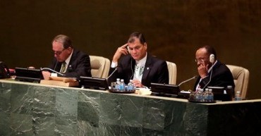Rafael Correa dirigió por 30 minutos la sesión de la Cumbre de Desarrollo Sostenible que tiene lugar en la sede de la ONU en Nueva York.