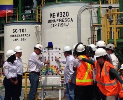 Presionando un botón, el vicepresidente de la República, Jorge Glas, dio inicio oficialmente a las operaciones de la Refinería de Esmeraldas tras 7 años de procesos de rehabilitación.