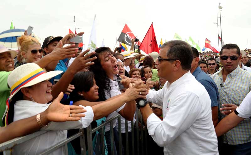 El Presidente Rafael Correa, llegó al parque Samanes para unirse a la celebración. de los 9 años de Gobierno de la Revolución Ciudadana.