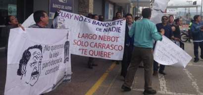 Grupos ciudadanos se apostaron en los exteriores del aeropuerto de Cuenca para mostrar su rechazo a la llegada del alcalde de Guayaquil, Jaime Nebot, para mantener una reunión con el prefecto de Azuay, Paúl Carrasco.