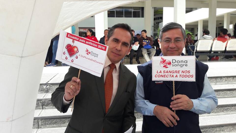 Esta mañaña en el Hospital de Especialidades Eugenio Espejo, se conmemoró el Día Mundial del Donante con un evento simbólico en donde intervienieron en director médico Carlos Jaramillo quien dio la más cordial bienvenida y motivo a los participantes para que donén sangre y salven vidas. Por su parte el Dr. Manuel Minaya director Zonal 9, entregó diplomas y medallas a los difrentes donantes de sangre por la solidaridad demostrada con las personas que necesita de este líquido vital para continuar con su existencia.