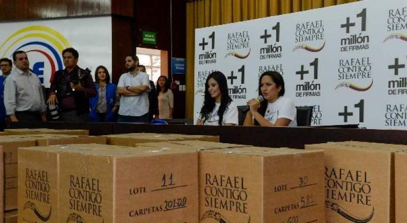 El colectivo Rafael Contigo Siempre entregó este lunes 1′ 248.000 firmas al Consejo Nacional Electoral (CNE) para impulsar una consulta popular que viabilice, mediante la derogatoria de una de las transitorias de las enmiendas constitucionales aprobadas en diciembre pasado, la reelección del presidente de la República, Rafael Correa.