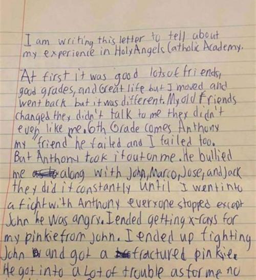 La carta la escribió un mes antes de tomar la decisión. En ella aseguró: “Me rendí. Los profesores no hicieron nada. Mrs. Goldrick (la directora) no hizo nada. Ms. D’Alora es la mejor profesora. Ella me comprendió e hizo algo, pero no duró mucho”.