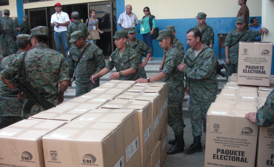 Las provincias amazónicas, son las primeras en recibir los kit, debido a la distancia y por que en algunos casos el material debe ser transpportado por vía aérea y fluvial; Principalmente, en Morona Santiago, Pastaza y Zamora Chinchipe. Estas locaciones se entregarán primero, porque hay sitios de difícil acceso. Todo el envío se realiza con la custodia de los integrantes de las Fuerzas Armadas. 1.700 militares darán seguridad a los recintos electorales.