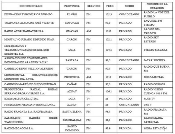 “Hoy se realizan procesos que cumplen con la normativa que rige al sector, de manera técnica, transparente y sin favoritismos, garantizando de esta manera la democratización efectiva de las concesiones de los medios de comunicación, ampliando hacia la sociedad la oportunidad del ejercicio de los derechos a la comunicación e información”, señaló un comunicado emitido por la entidad.