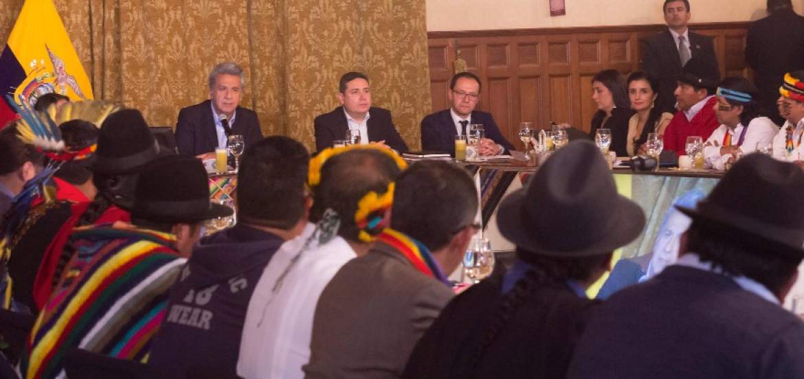 El Gobierno Nacional mantuvo este martes un diálogo «amplio y fraterno» con dirigentes de la Confederación de Nacionalidades Indígenas del Ecuador (Conaie), quienes entregaron una agenda de cinco puntos para la construcción de un Estado Plurinacional.