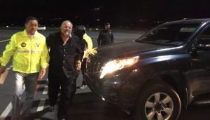 Vestido de negro y en silencio, Pareja salió de la sala protocolar del aeropuerto las 21:18; al subir a un vehículo negro quiso hablar con la prensa, pero la custodia policial no se lo permitió. Estaba previsto que se lo traslade a la Unidad de Flagrancia de Quito para un reconocimiento médico.