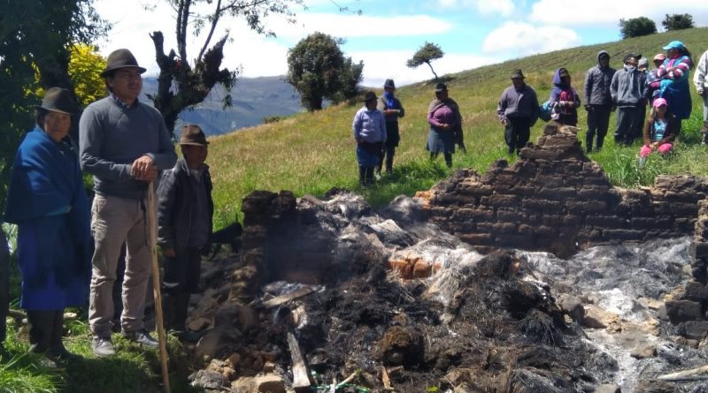 Por orden de un juez de la Unidad Judicial Multicompetente del Cantón Sigchos y con protección de la Policía Nacional ingresaron, este lunes 4 de junio de 2018, a la vivienda de Rafael Ayala, para incendiarla casa con algunos animales y aves.