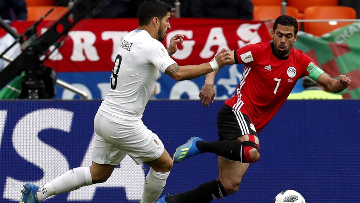 Cavani remató desde la izquierda del área con una ‘volea’ y Suárez no pudo definir en una inmejorable ocasión dentro en el área. Una nueva opción en ataque para los charrúas se produjo al 39 cuando Diego Godín avanzó hasta el área egipcia y habilitó a Giorgian De Arrascaeta que no supo definir. Antes de que termine el primer tiempo, Egipto respondió con una chilena de Marwan Mohsen dentro del área.