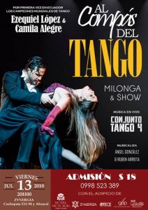 Por primera vez en el Ecuador se contará con la presencia de los campeones mundiales de tango, Ezequiel López & Camila Alegre, bailarines profesionales de renombre mundial, cuya técnica y sus movimientos en escena son exquisitos y la precisión con la que conjugan sus pasos hacen de su baile una experiencia fina y apasionada.
