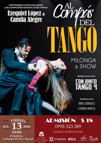 Actualmente en Ecuador, por primera vez, las ciudades de Quito y Cuenca se deleitarán con la pasión, la sensualidad, la cadencia y la técnica excepcional de los campeones mundiales de Tango. “Al Compás del Tango” se realizará en dos ciudades del Ecuador.