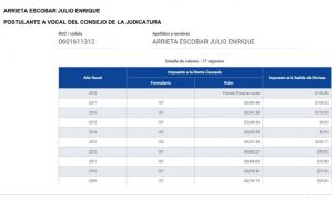 A continuación la declaración de impuestos y patrimonio del Aspirante al CJ,mas abajo hay dos enlaces donde puede comprobar los cuadros.(I)