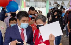 Hasta el mercado de Cotocollao llegó este 2 de julio de 2021 Jorge Yunda, alcalde de Quito, para premiar al mejor hornado de la capital.