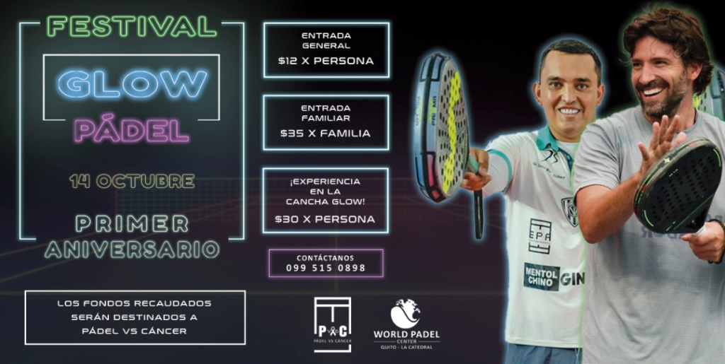 Por primera vez en el país se realizará un “Festival Glow Pádel” un espectáculo en donde la luz es el protagonista principal, con fascinantes juegos de luces, proyecciones, técnicas de iluminación innovadoras y otras sorpresas; que buscan generar en los asistentes al evento trasladarse a un mundo asombroso donde lo alucinante, lo encantador y lo deslumbrante los distraigan y entretengan.