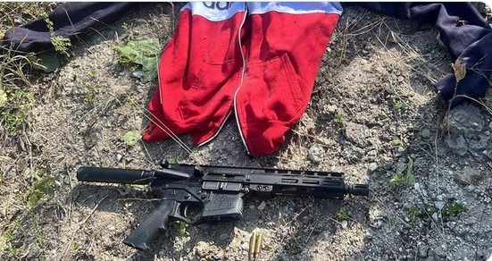 Dentro de las evidencias se encuentra un fusil, la alimentadora de esta arma de 30 cartuchos, 18 sin utilizar; un teléfono celular, prendas de vestir, un recipiente de combustible que se presume se utilizaría para incendiar el vehículo una vez concretado el atentado y una camioneta.