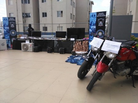 Entre las evidencias encontradas constan 6 armas de fuego, 25 celulares, dos computadores, junto con dos camiones y un vehículo que estaban desmantelados.