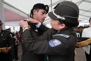 Los agentes recibieron las nuevas insignias policiales correspondientes al inmediato grado, acompañados de sus familiares, pilares fundamentales en la obtención de este escalón personal y profesional para sus vidas. /Redacción Quito.