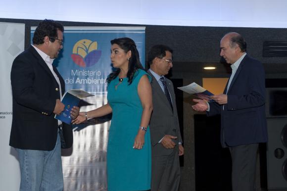 La ministra Tapia y el representante del Magap, Gustavo Martínez, entregaron este mapa de forma simbólica a Edwin Miño, representante del Consorcio de Gobiernos Autónomos Provinciales del Ecuador y a Pedro Pablo Peña, representante en Ecuador de la Organización de Naciones Unidas para la Alimentación y la Agricultura (FAO).
